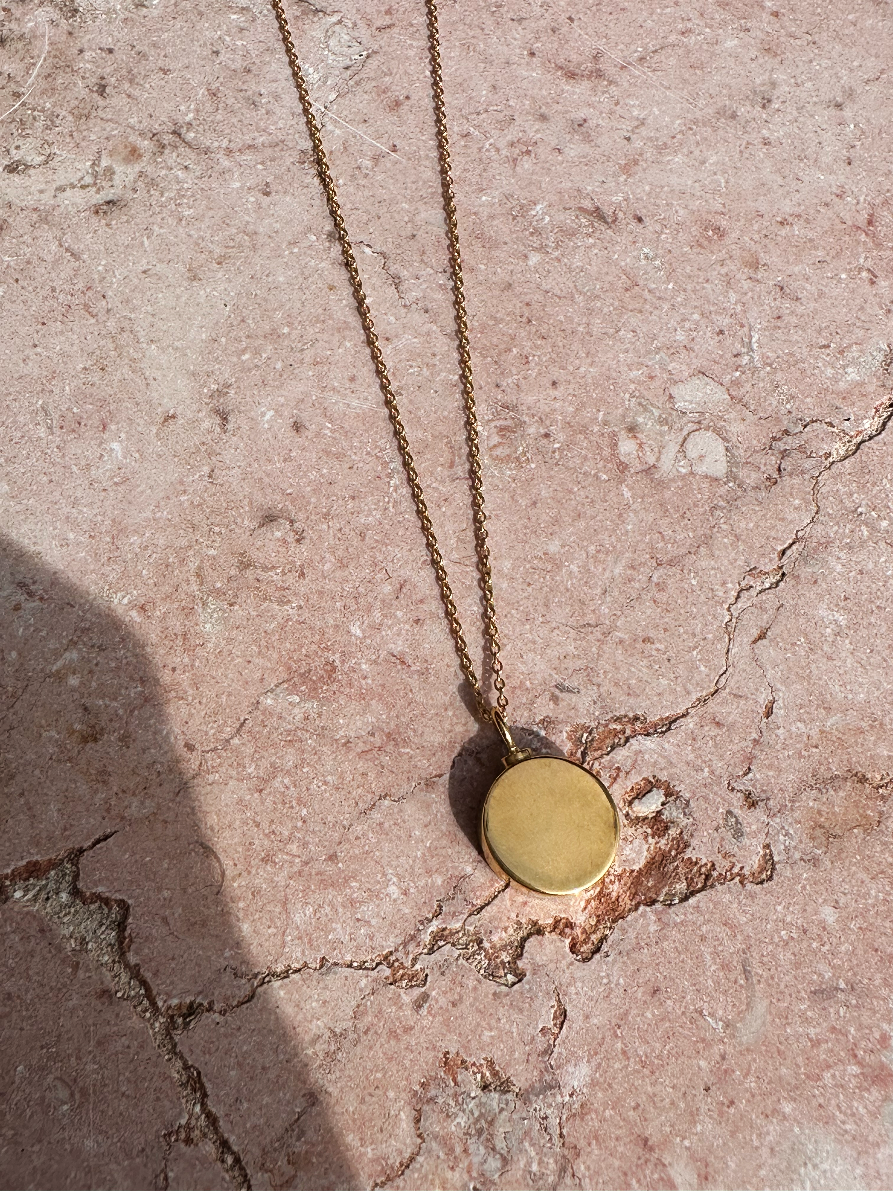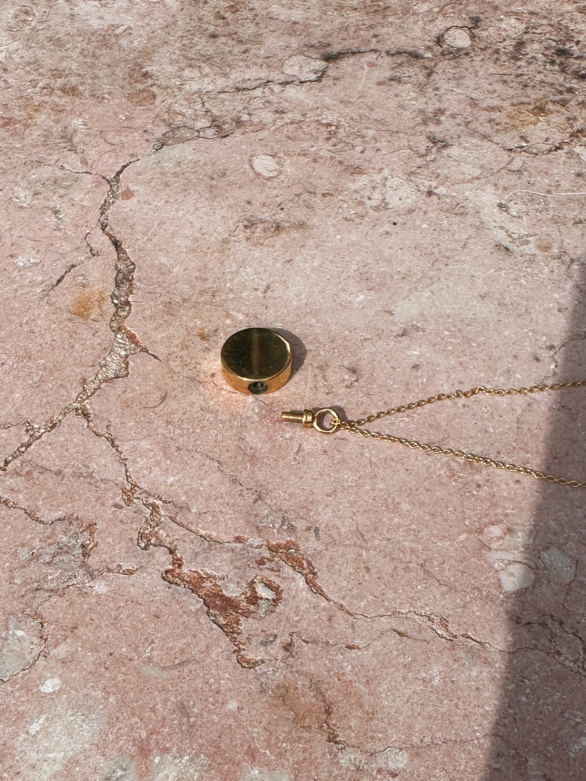 This timeless necklace pairs a fine, delicate chain with a beautifully polished circle pendant, available in sterling silver or 18k solid gold plating. Thoughtfully designed to embody both elegance and meaning, the pendant discreetly serves as a wearable urn—providing a deeply personal way to keep a loved one close.
