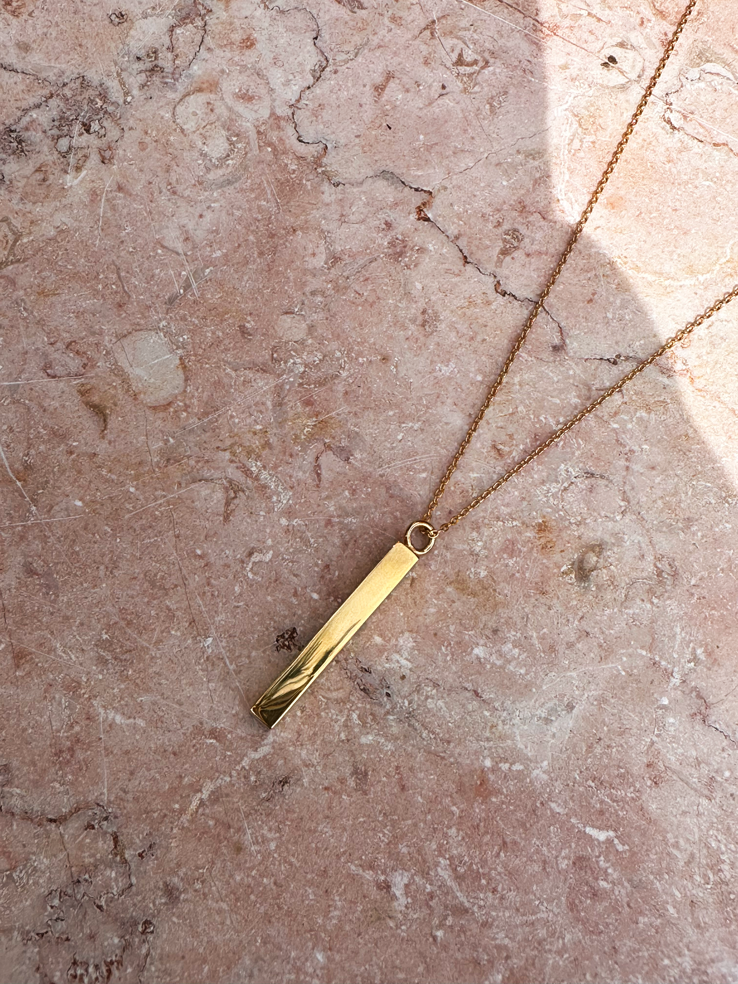 The pendant includes a secure screw closure at one end, which can be easily removed to reveal the hollow interior. This carefully crafted design allows the bar to hold a small amount of ashes or another cherished keepsake, while remaining subtle and stylish for everyday wear.
